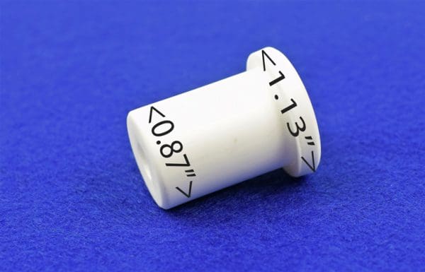 Flanged ceramic insert 1″-3/8″ Long 7/8″ Diam barrel. Straight Bore 3/8″
